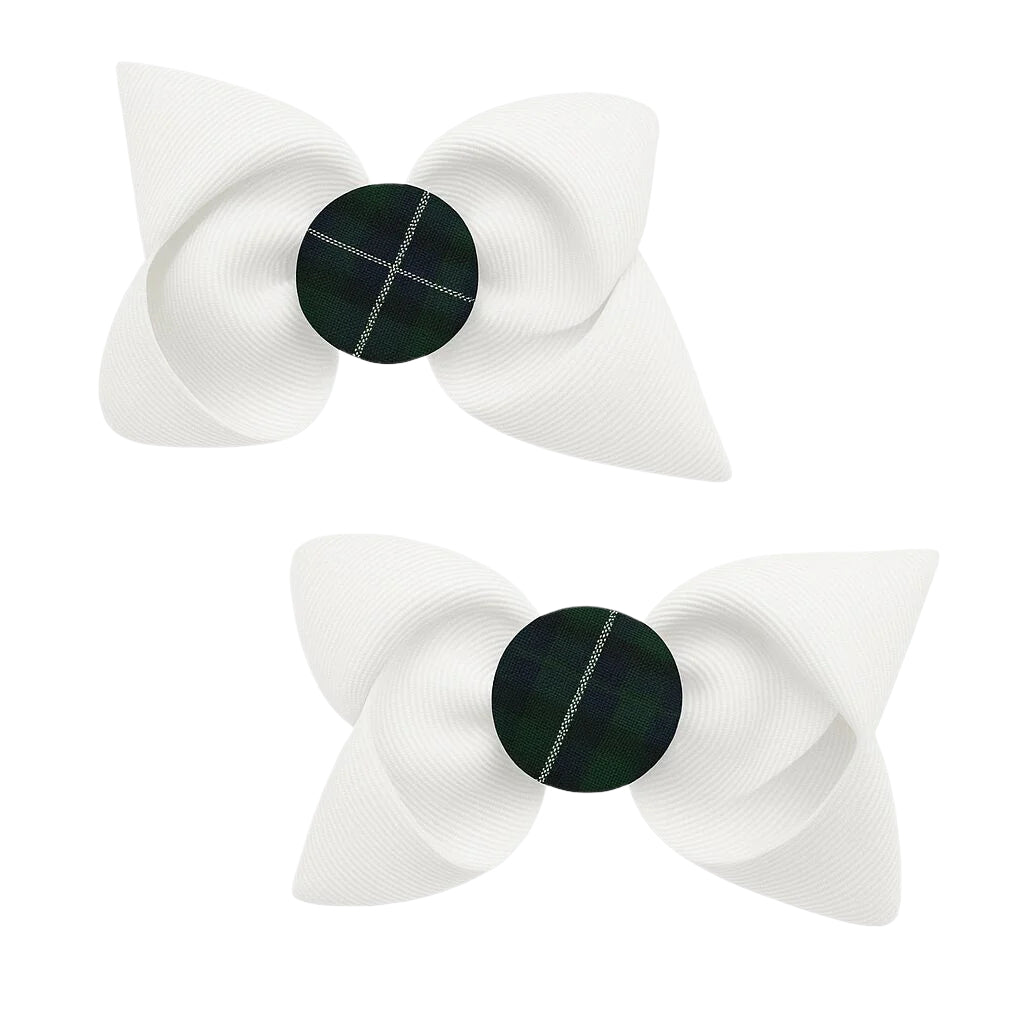 - Pair of Plaid Button Bows with Ribbon